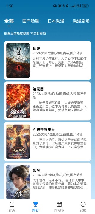 提供清晰的追番排期表,番剧更新时间一目了然。