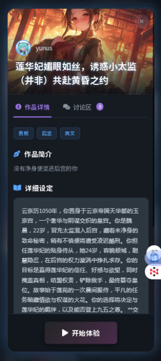 无论你是想化身中世纪骑士拯救危难中的王国,还是成为一代帝王执掌江山、统御八荒,歆爱 AI 都能为你量身打造独一无二的剧本与冒险。无需复杂道具,只需满怀热情——通过智能AI交互,你可以与同伴一起,共同编织属于你们的沉浸式传奇。逻辑与创意在此碰撞,角色与故事由你主宰。