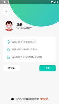 1、软件需要登录注册后才能使用,没有账号的点击注册。