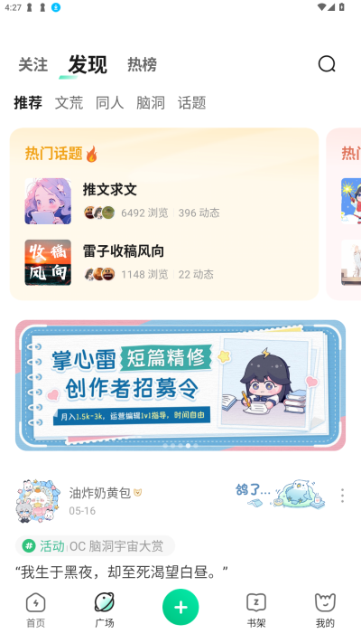 精品故事:奇幻小说「我们凭借时空相认」「等一颗流星」,都市职场「晚风心里吹」「披荆斩棘的于小姐」,脑洞「师姐请抱好桃木剑」,现言「谁能凭爱意要富士山私有」,古风「庆新生」,悬疑「千万审判」,现实「梦春来」,科幻「肉食世界」,世情「盐碱地上开出的花朵」等你pick~