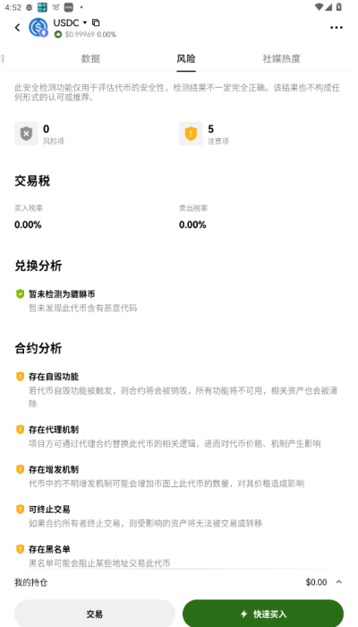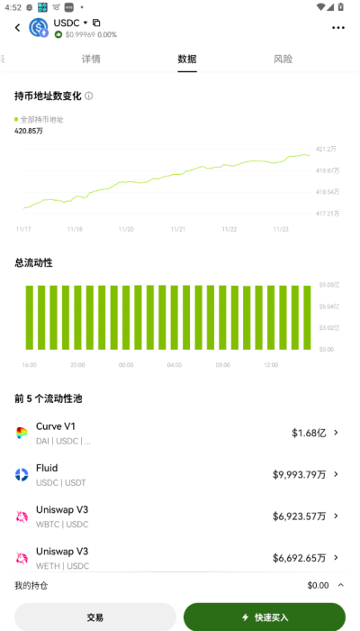 虽以 USDC 为核心,但也支持 USDT(Tether) 等其他稳定币交易,满足用户在不同稳定币之间的快速兑换需求。