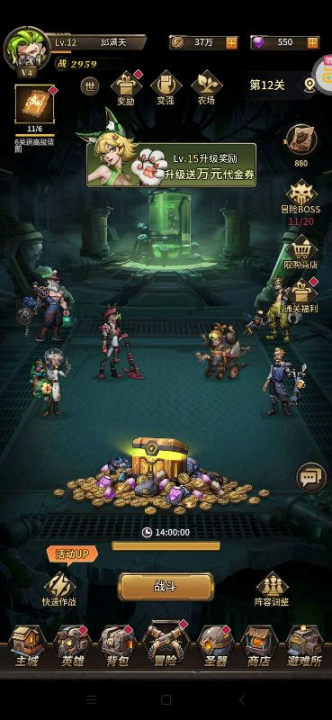 开启自动战斗与资源获取,离线也能获得经验、金币、进化材料。