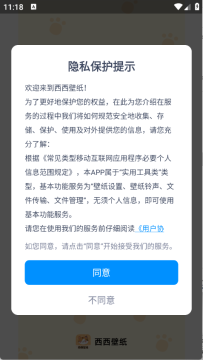 1、用户首先在fxxz下载西西壁纸app,查看并同意隐私政策与用户协议。