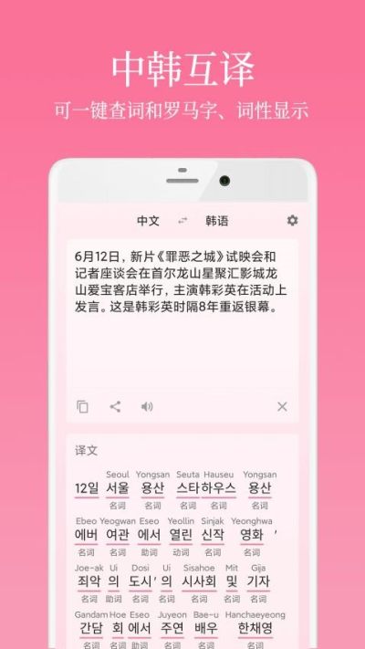 具有专业的韩语翻译工具,支持一键翻译文本内容,无论是短句、长句还是段落,都能快速生成准确的翻译结果。翻译结果会标注语法结构、重点词汇含义,帮助用户不仅知其然,还知其所以然。在阅读韩语文章、与韩国朋友交流时,该功能能即时提供翻译支持,解决语言沟通障碍。