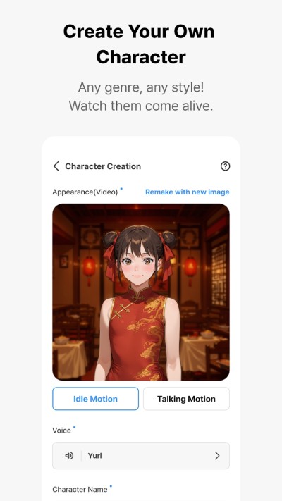 角色对话互动:你可以自由选择喜欢的 AI 角色,与它们进行实时对话。角色会根据你输入的内容做出相应的回应,无论是文字交流还是语音互动,都能让你感受到真实的交流氛围。