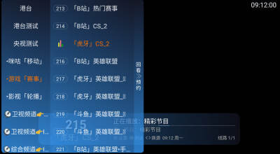 2、点击屏幕左侧,会自动弹窗出频道切换;