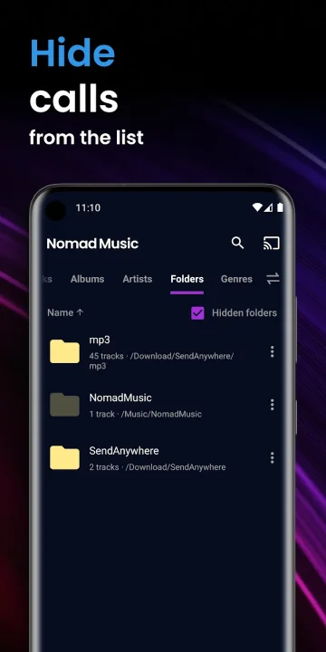 Nomad Music 注重多场景与设备适配:支持 Chromecast,用户可通过 Chromecast 设备,将手机中的音乐投射到电视、音响等设备上播放,打造家庭影音氛围;蓝牙和耳机支持,当蓝牙设备或耳机断开连接时,软件会自动暂停播放,避免音乐外放尴尬;接到电话时,音乐音量会自动降低,通话结束后恢复播放,细节设计贴心,适配日常使用场景。