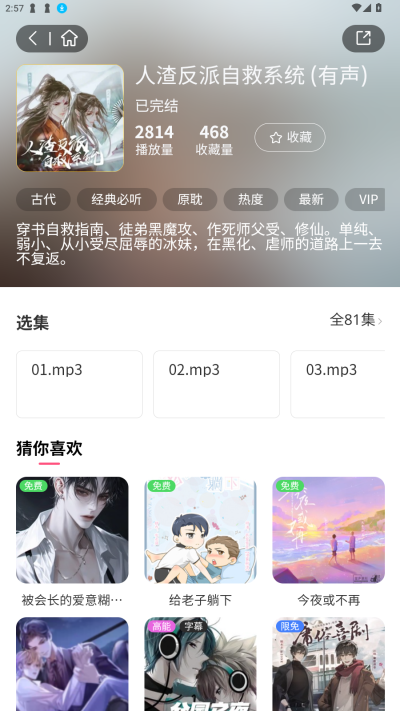 个性化推荐:根据用户的收听历史和兴趣偏好,推荐适合的广播剧和有声内容,节省寻找时间。