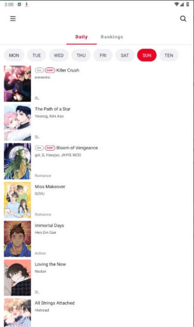 1、 Lezhin韩文官网最新版下载通过榜单的设计,您能够轻易地发现许多网友正在看哪些韩漫动漫。
