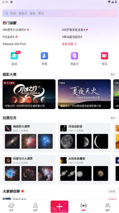 平台聚焦天文领域,汇聚全球专业天文爱好者,用户可在线随时开展专业交流互动,探讨天文知识、摄影技术等深度话题,结识同好,提升自身专业素养。