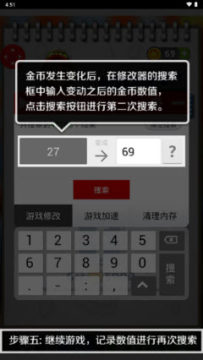6.金币发生变化后,在修改器搜索框中输入变动后数值,点击搜索按钮;