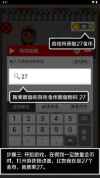 4.开始游戏,在得到一定数量后,如本次获得了27个金币,搜索数字27;