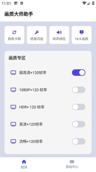 1、在首页之中可以根据不同的画质来进行调整帧率,确保画面的清晰度。