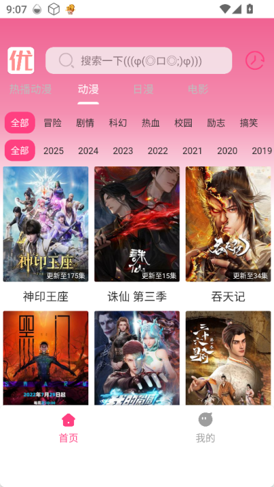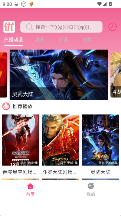 2、用户可根据就推荐或直接搜索选择心仪的动漫。