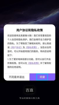 下载打开吉真紫微斗数,阅读弹出的用户协议和隐私政策,点击【同意】;