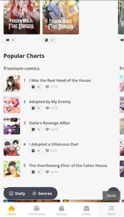 4、可以参考热度排行榜,找到感兴趣的漫画或小说。