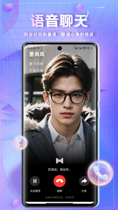 3、无论何时何地,只要打开“未来对话者”,AI虚拟人物就能陪伴左右,聊天解闷,分享快乐,甚至是提供心理慰藉。