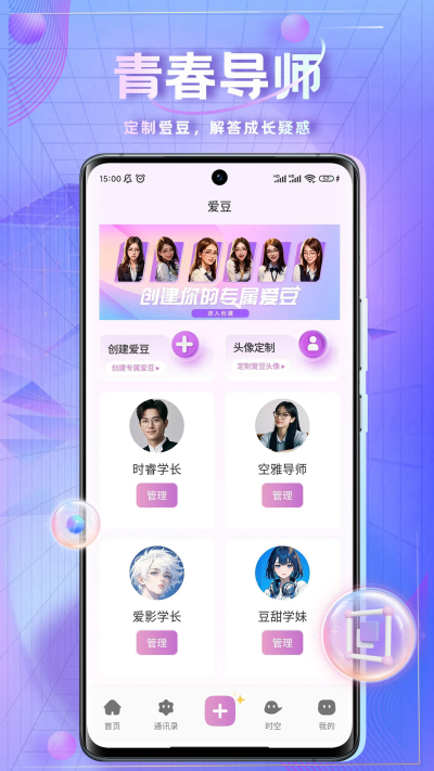 时空爱豆app是一个能让你与虚拟偶像亲密无间的奇妙空间。在这里,每位用户都能成为独一无二的造物者,亲手塑造出心中的理想形象,与之进行深度交流,探索彼此的内心世界。时空爱豆软件通过精心设计的爱豆训练系统,你的偶像将伴随你一同成长,分享欢乐与忧愁,成为你生活中不可或缺的伙伴。现在就行动起来,下载时空爱豆,开启你的非凡之旅,释放内心的无限潜力,与爱豆一同成长,一同探索未知的世界。