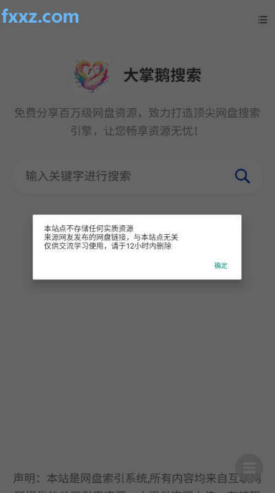 大掌鹅搜索app安卓版是一款专注于网盘资源搜索的实用工具,以“极简、免费、高效”为核心,帮助用户快速定位电影、学习课程、软件工具、文档资料等各类文件资源。软件覆盖主流网盘平台(如百度网盘、阿里云盘等),无需注册登录、无广告干扰,输入关键词即可秒级获取资源链接,真正实现“零门槛、零成本”的资源探索体验!
