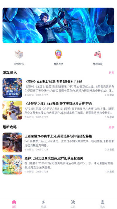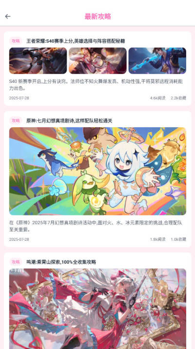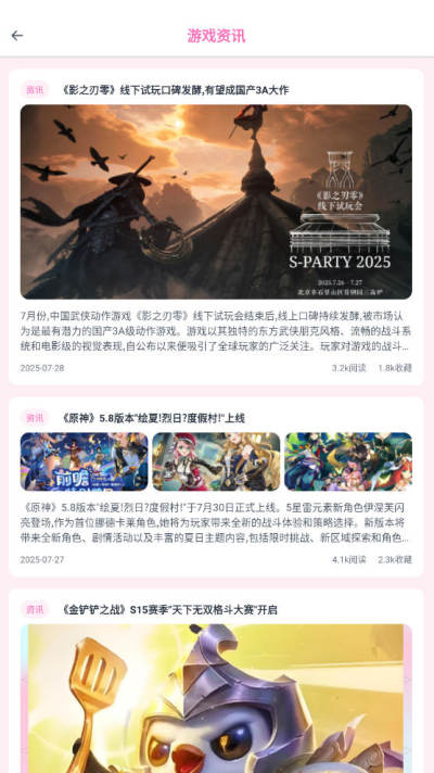 2、打开软件,进入首页后,可浏览实时更新的游戏资讯、新闻活动及攻略,点击感兴趣的内容即可查看详情;