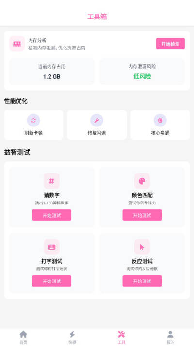 4、找到底部的“工具”板块,可以一键修复游戏卡顿、闪退等问题。