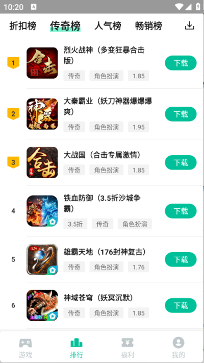 2、点击排行版,就可以看到最新的折扣榜、传奇榜、人气榜、畅销榜。