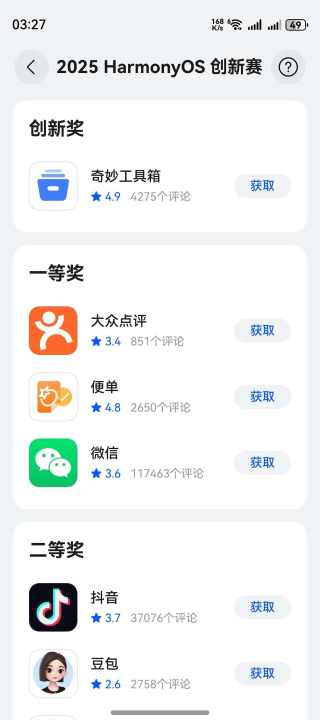 设立“鸿蒙星标”认证,标注深度适配鸿蒙特性的应用(如卡片式服务、AI预加载等)。