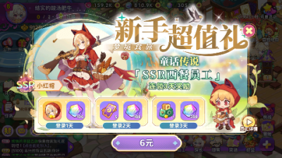 钻石礼包:首次购买获得十倍返利,额外获得召唤之证,SR/SSR碎片