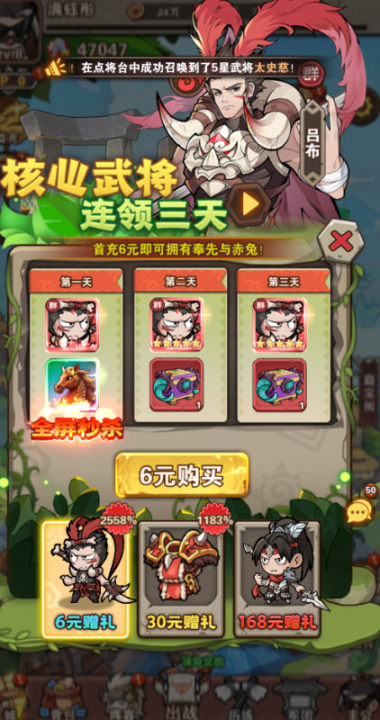 游戏主打一个“福利拉满”!完成简单的新手引导后,海量的抽卡资源(千抽福利) 在等着你。别犹豫,疯狂点击抽卡!目标是集齐你的石器时代Q萌武将天团(吕布扛石戟、关羽拿骨刀、甄姬摇羽毛扇...画面太美!)。
