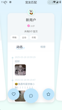 3、动态分享:支持发布文字、图片或视频形式的宠物日常内容,与其他用户点赞评论互动,打造个性化展示空间。