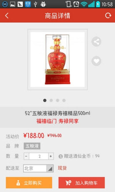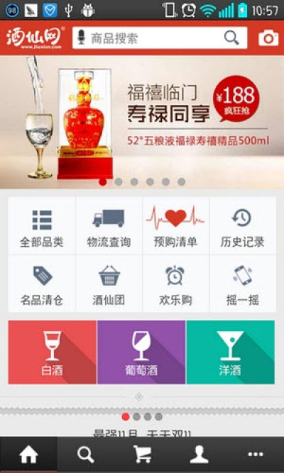 酒仙网是一个买酒的网络商城平台,主营进口高档洋酒、红葡萄酒、国产中高档白酒、葡萄酒和花雕酒等,通过这款手机客户端,即使足不出户也能买到想要的酒,非常方便,喜欢喝酒的朋友快来下载使用吧!