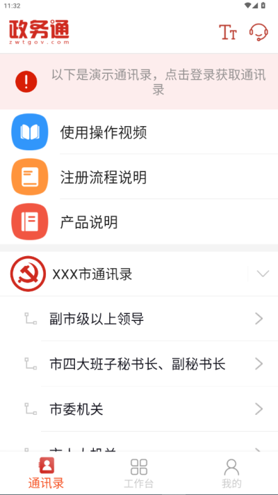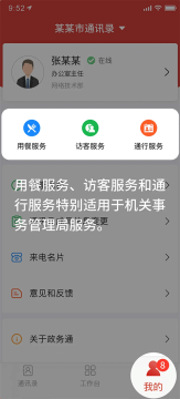 政务通 App 核心功能围绕内部通讯录管理和公文流转展开,同时集成会议通知、跨平台短信、审批、考勤、用车管理、用餐管理等多项办公服务,还支持查阅时政新闻及查快递、天气、违章等便民服务。它通过信息化手段,解决传统纸质通讯录查找难、通知低效等问题,推动党政机关管理与服务模式创新升级,实现高效协同办公。