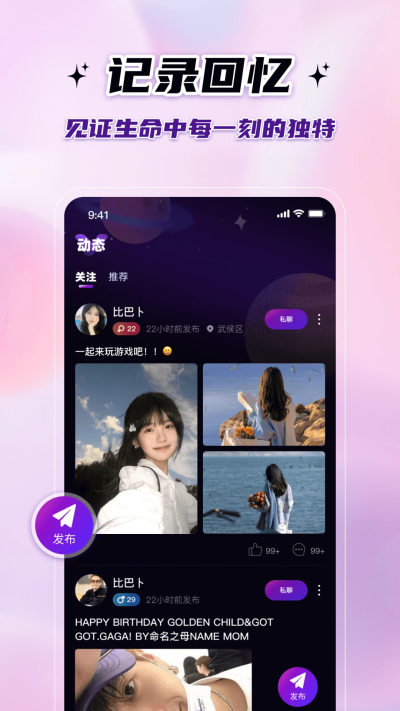 点歌、玩游戏、交友等多种主题房间,可实现多人在线互动,快速帮助你找到契合的好友,处CP找玩伴,让关系更加纯粹~