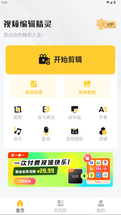 1、下载安装后打开软件进入首页,点击开始剪辑。