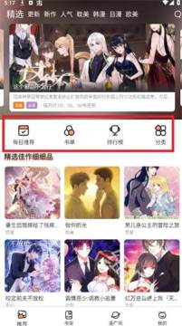 4、点击喜欢的漫画查看,也可以从点击这些模块进入查看
