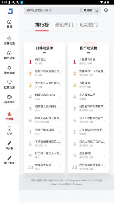 4、将一些人气动画制作成专门的榜单,根据排名来寻找自己感兴趣的资源。