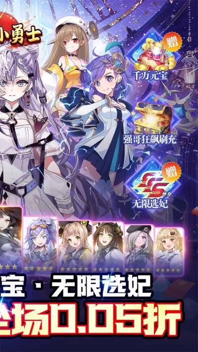冲锋小勇士巾帼英雄0.05折福利版是一款以二次元美人卡牌为核心玩法的福利向手游,独创“帝王选妃”养成体系,融合策略战斗、后宫经营与无限福利于一体。玩家可自由招募百位风格迥异的二次元少女美人,组建专属美女军团,通过深度养成、策略搭配与跨服征战,体验“坐拥后宫三千,问鼎全服之巅”的热血与浪漫。充值永久0.05折的颠覆性设定,搭配开局千万元宝、无限召唤令、十星英雄免费送等狂欢福利,让零氪党也能轻松制霸全服!