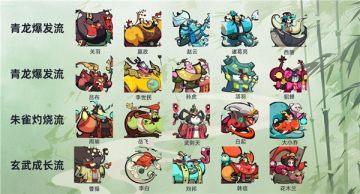 周瑜:核心输出,灼烧流代表人物,爆发力强。岳飞:反伤肉盾,同时也有保护队友的能力。白起:单体收割,可连续收割残血目标,并限制目标复活。武则天:推图能手,入场爆发力强。大小乔:治疗专精,给队友加暴击也能有效提升输出。