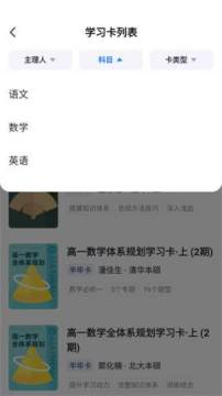 4、在学习卡列表可以选择主理人、科目以及卡类型。