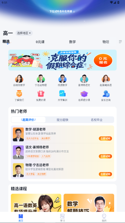 有道领世 app 覆盖了高中阶段语文、数学、英语、物理、化学等多个核心学科,为学生提供了丰富多样的学习视频资源。学生可根据自身的学习进度、知识掌握情况和个人需求,自由选择想要观看的学习视频,自主规划学习内容与节奏,充分满足不同学生在高中学习过程中的多样化需求,让个性化学习成为可能,帮助学生更高效地吸收学科知识。