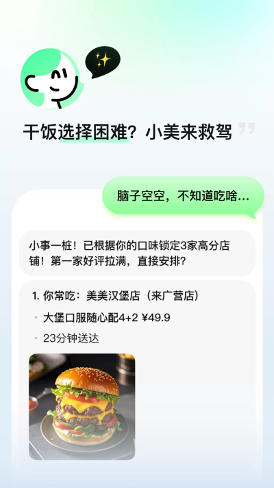 基于美团本地生活的垂直服务场景,用户只需要说句话,“小美”就能根据用户喜好下单咖啡、主动安排每天的早餐、推荐适合约会的餐厅,因为操作简单还可以为老人、小孩等人群提供更多生活便利。