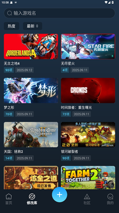 3、进入修改库页面,可以查看所有支持修改的游戏。