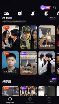 1.在本站内下载安装并打开软件,进入主界面后,可看到“Templates”(模板)、“FaceSwap”(人脸互换)、“AI手办”等功能板块。