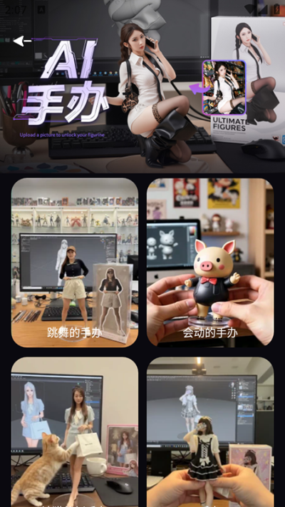 2.点击“AI手办”板块,上传一张照片,等待系统生成手办图片及相关效果。
