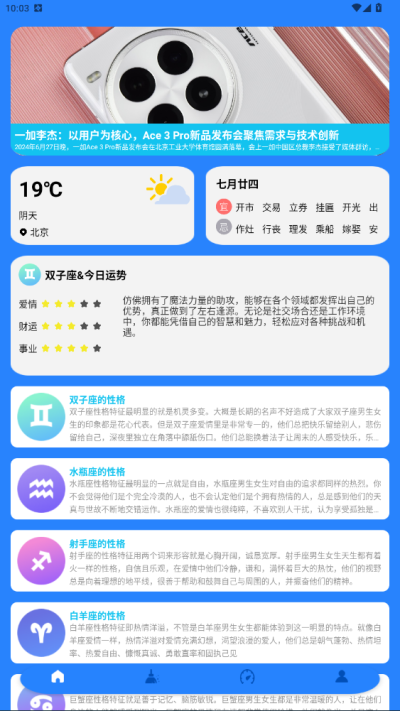 2、信息获取全面及时:不仅为用户提供全面的信息查询服务,可随时搜索所需内容,还能实时更新日历节日信息,让节假日计划一目了然;同时星座数据全面、使用方便,用户能轻松了解每日星座运势。