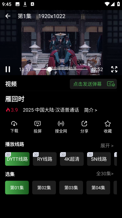 多线路播放:4K超清、SN线路、YY线路,总有一条适合您