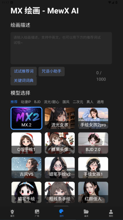 3、给需要生成的绘画在对话框中输入想要生成的关键词;