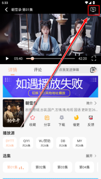2.点击右上角的投屏按钮。