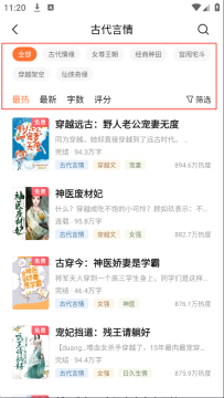 1、用户可以通过不同的分类来筛选查找自己感兴趣的小说。
