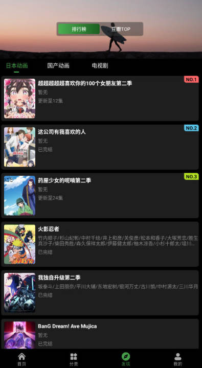 2、在首页浏览推荐的动漫,也可以切换榜单查看动漫,或者是按分类查找;